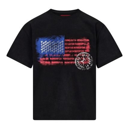 Ce t-shirt en coton lavé vintage personnalisé présente une encolure côtelée, des motifs “US” craquelés imprimés sur le devant et