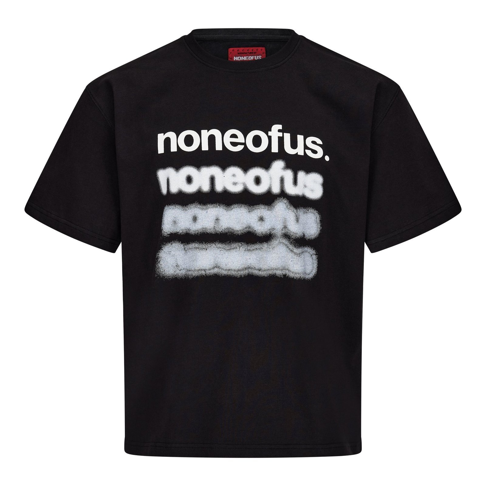 Black cotton T-shirt features a ribbed neckline, with blurred „noneofus“ graphics printed at front and with a clean back.