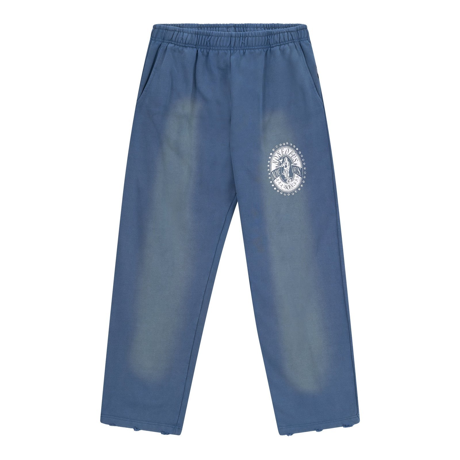 Heavy cotton sweatpants with thigh print, finished with rhinestones. It comes with a distressed vintage waistband, hem and pocket. Each piece is unique and print distressing my vary per style.